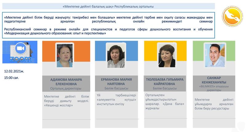 Республиканский семинар в режиме онлайн для специалистов и педагогов сферы дошкольного воспитания и обучения «Модернизация дошкольного образования: опыт и перспективы»